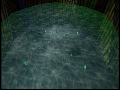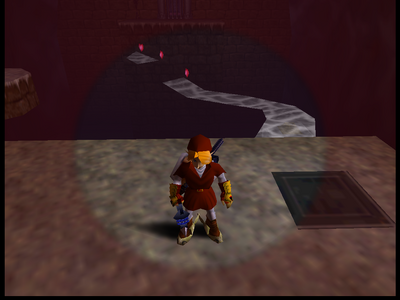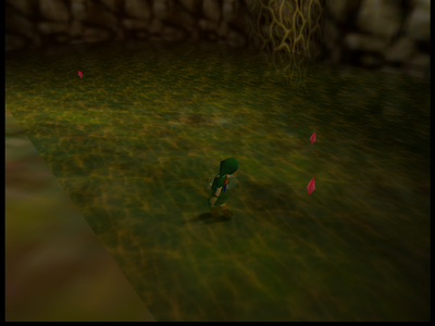 The floating rupees in this room can be obtained by playing Song of Time to create a platform allowing link to grab them. If here as a child, they can be reached with Boomerang as well.