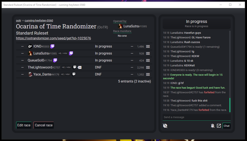 current21:19, 9 February 2022Thumbnail for version as of 21:19, 9 February 20221,163 × 665 (145 KB)Flagrama (talk | contribs)A screenshot of LiveSplit in the middle of a Ocarina of Time Randomizer Race on Racetime.gg Provided by Dyn.