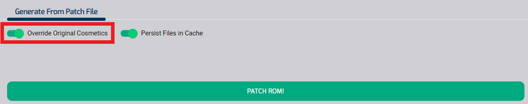Once you are on the patching screen, you can override those settings by turning on Override Original Cosmetics above the Patch Rom! button. Then you can set cosmetics on this page to override the ones set in the patch file.