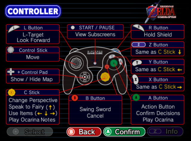 The only known compatible controllers for Wii VC are any Wii Classic Controller and the Gamecube Controller. For Virtual Wii a Wii Classic Controller is your only option. An image of the controller mappings for the Gamecube Controller on Wii VC can be seen below. Note that "L-Targeting" is typically called "Z-targeting" by the OoT community as that technique was bound to Z on the N64, whilst toggling the mini-map was bound to L.